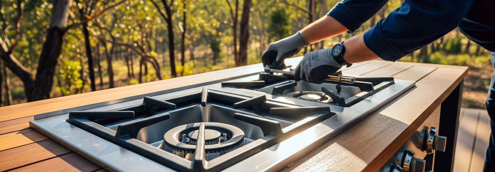 Specialized outdoor gas BBQ installation with proper line connection and safety setup for entertaining at home.